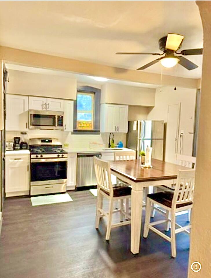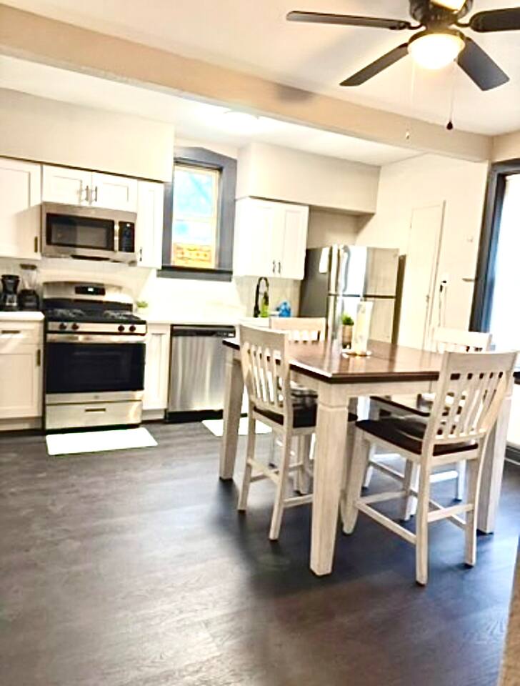 **Welcome to Your Spacious Chicago Retreat – Just Minutes from Midway Airport!** Discover the perfect blend of comfort and convenience in this expansive 1-bedroom apartment, ideally located just 5 minutes from Midway Airport. Whether you're in town for a quick layover or an extended stay, this stylish and newly remodeled space is designed to make you feel right at home. Step inside to find beautiful hardwood floors throughout, a bright and airy layout, and a **huge, fully equipped kitchen** that’s perfect for whipping up your favorite meals. The adjacent dining area is ideal for enjoying your creations or planning your Chicago adventures. After a long day, unwind in the **luxuriously comfortable bedroom** featuring a plush king-sized bed, or relax on the **oversized sofa bed** that comfortably accommodates extra guests. Outside, you’ll find a **spacious backyard** – a rare urban oasis where you can enjoy a morning coffee or an evening under the stars. Need to explore the city? Public transportation is just a block away, with easy access to trains that connect you to all of Chicago’s iconic neighborhoods and attractions. For added convenience, Uber is always a quick and reliable option. **Why you’ll love staying here:** - **Prime location**: Close to Midway Airport, dining, shopping, and more. - **Modern amenities**: Newly remodeled kitchen with everything you need to cook and dine in style. - **Comfort for everyone**: Perfect for solo travelers, couples, or small groups with the extra sofa bed. - **Long-stay friendly**: Thoughtful touches to make extended stays feel seamless and comfortable. Whether you’re here for business, pleasure, or a little bit of both, this apartment offers the space, comfort, and convenience you need to make your trip unforgettable. Book now and experience Chicago like a local!