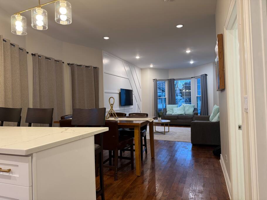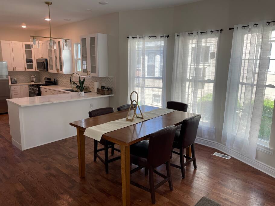 this is downtown Brookfield. You will be close to everything. We opened up the whole first floor and gave it an open layout so that people can interact and enjoy time together. So the living room, dining room and kitchen are all in the same area. The upstairs is all bedroom space. We have a total of four bedrooms and one office for those that I want to get some work done. We have a laundry room on the second floor in case you need to wash anything. We designed the home the same way that we designed our own home. We hope you enjoy yourselves. Please note when street parking that street sweeping/cleaning is Thursdays. Please read and follow the city parking rules/signs.